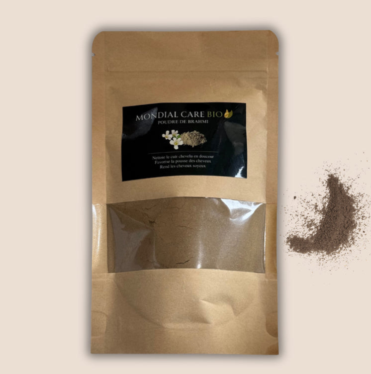 Notre poudre de Brahmi 100% BIO cultivée et produite en Inde plus particulièrement dans la région de Punjab, possède de nombreux bienfait pour vos cheveux :